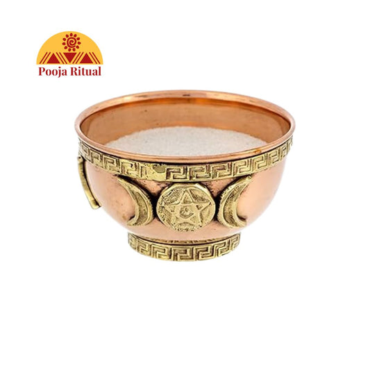 Triple Moon Copper Offering Bowl for Altar Use, Rituals, Incense, Smudging, and Decoration 3 Inches